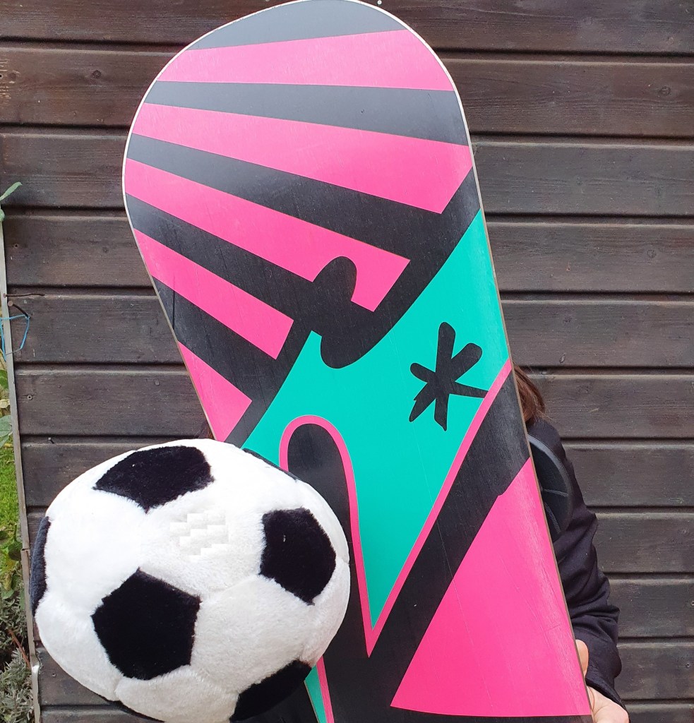 Meine beiden Lieblingssportarten, Snowboarden und Fußball! Über zwanzig Jahre habe ich Fußball gespielt und seit frühester Kindheit stand ich im Winter auf Brettern. Dieses Jahr ist alles anders, also bringe ich dem Einjährigen gleich nach dem Laufen das Schießen bei und fahre mit ihm Schlitten, sobald es das Wetter zulässt.