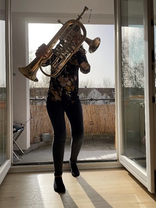 Schon immer hat mich Musik begeistert. Gemütliche Abende mit meiner Oma und dem Musikantenstadl haben mich dann zu meiner bisher größten Leidenschaft gebracht. Dem Trompetenspiel. Der Lockdown trennt mich nun nicht nur von euch Schülern, sondern auch vom gemeinsamen Musizieren im Orchester. Ab und an nutze ich die Zeit und spiele zu Hause für mich alleine – und für meine Nachbarn, die natürlich gerne zuhören. Ob sie wollen oder nicht! Ich freue mich schon darauf, endlich wieder mit euch zu singen und Musik zu machen. Bleibt gesund und habt immer ein Lied auf den Lippen, denn dann ist vieles leichter zu ertragen!