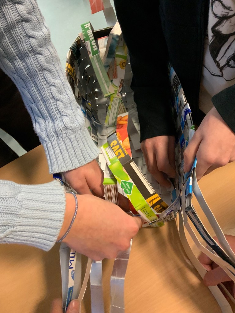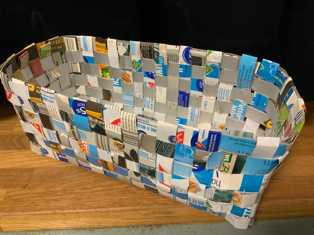 Aus den Resten der Tetrapaks ist schließlich sogar ein Korb entstanden: