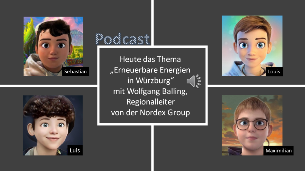 Letztendlich sind wir zu dem Entschluss gekommen, dass der Windkraft die Zukunft gehört, da sie auf wenig Raum den meisten Strom erzeugen kann und die ideale Ergänzung zur Solarenergie darstellt. Daher interviewten wir Herrn Balling, den Regionalleiter von der Firma Nordex, die weltweit eine der größten Windkraftanlagenhersteller im Onshore-Segment ist. Mehr erfahrt ihr in diesem Podcast!